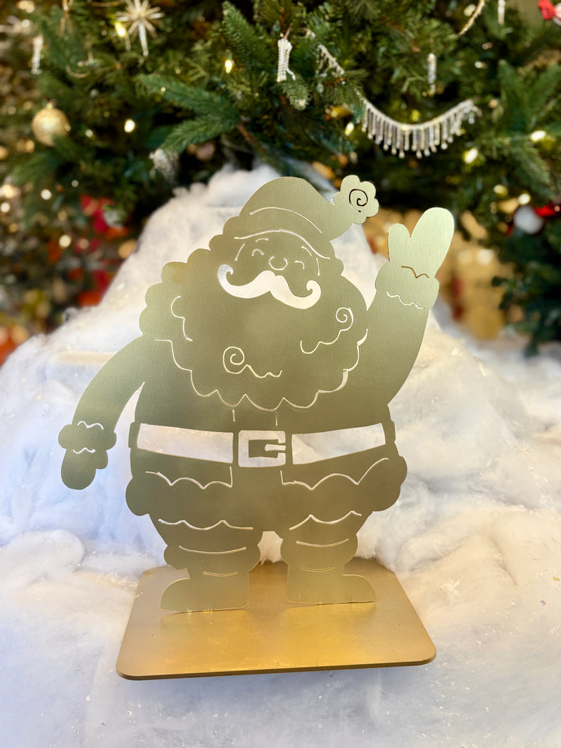 Ho ho ho! Bring jolly Saint Nick to life in your garden with this delightful steel Santa Claus sculpture. Choose your preferred display style—select stakes for garden beds and borders, or opt for a sturdy base for patios and pathways. Select from a rainbow of festive paint colors to match your holiday décor and personal style. Whether you're creating a winter wonderland or adding festive cheer to your outdoor space, this playful Santa is guaranteed to spread smiles and seasonal joy to all who pass by. Contact us directly if you are interested in a larger size!