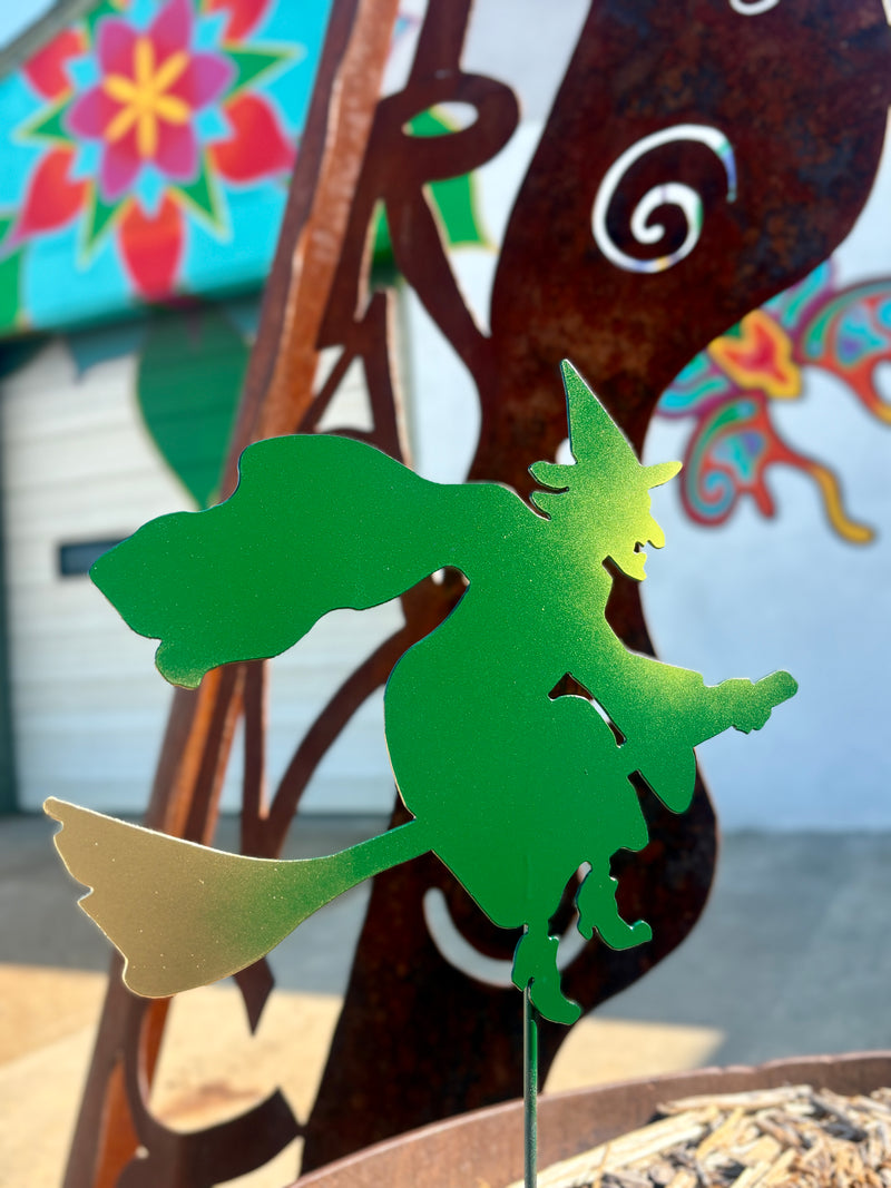 A wicked Witch from the East soarin' o'er yer mums and gourd patch! She'll defy gravity as she flies over your pumpkins.